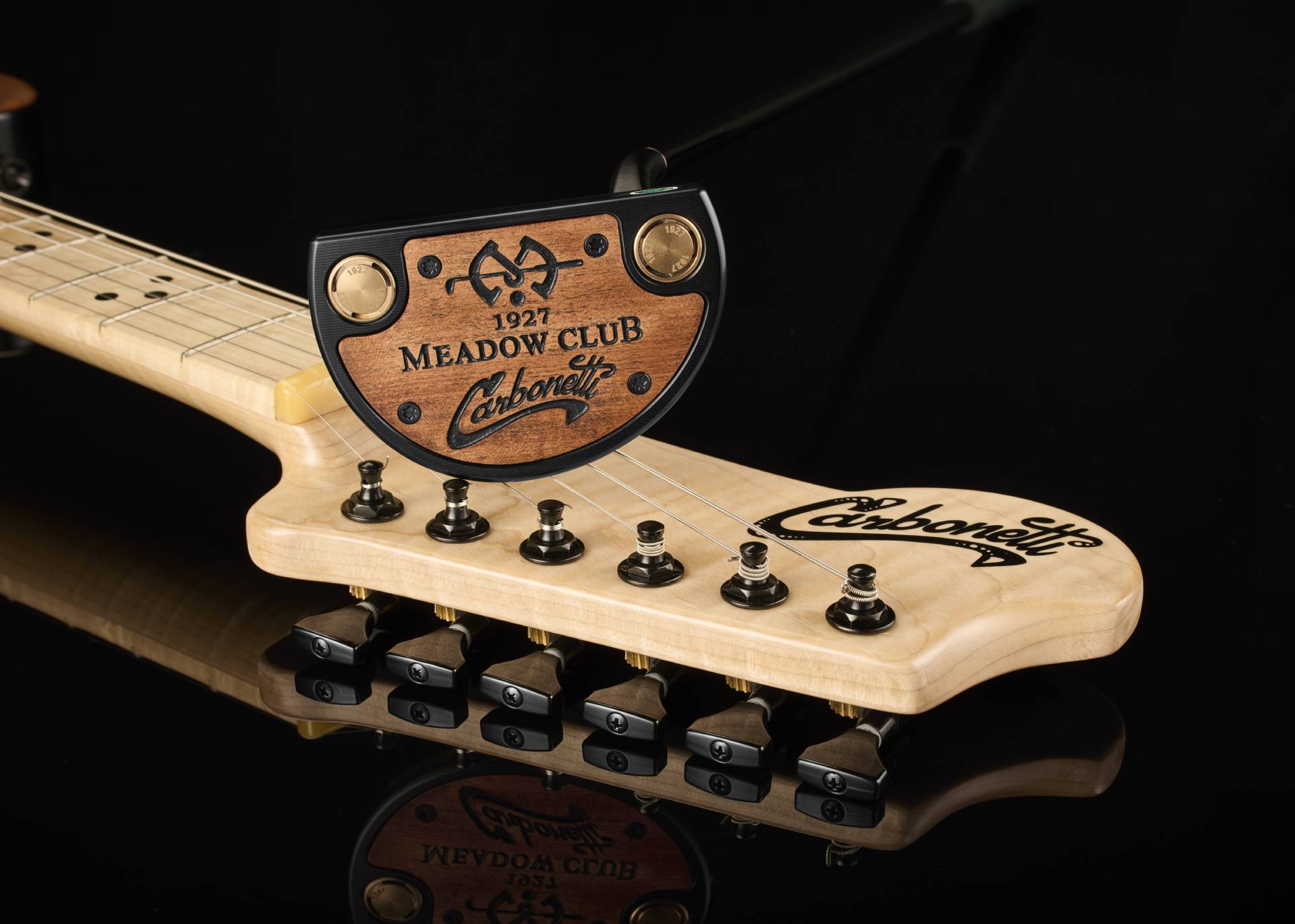 But the real star of the show is the sole plate, hand made by Jimmy Carbonetti. The master luthier-turned-obsessed golfer has made guitars for dozens of famous guitarists. This is his third collaboration with us and our most ambitious project yet.
